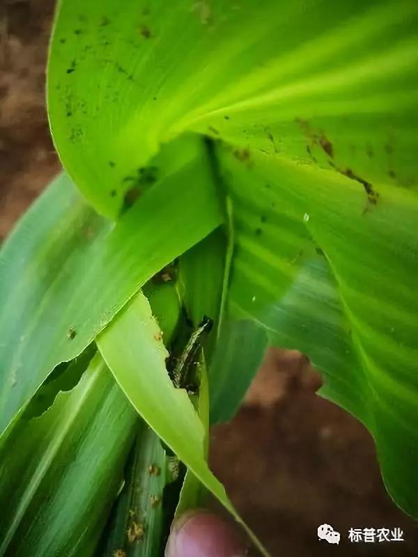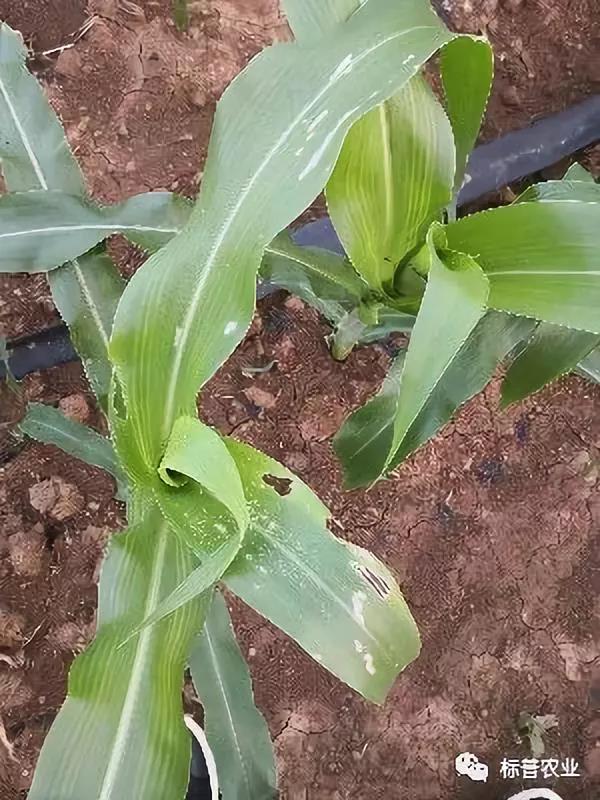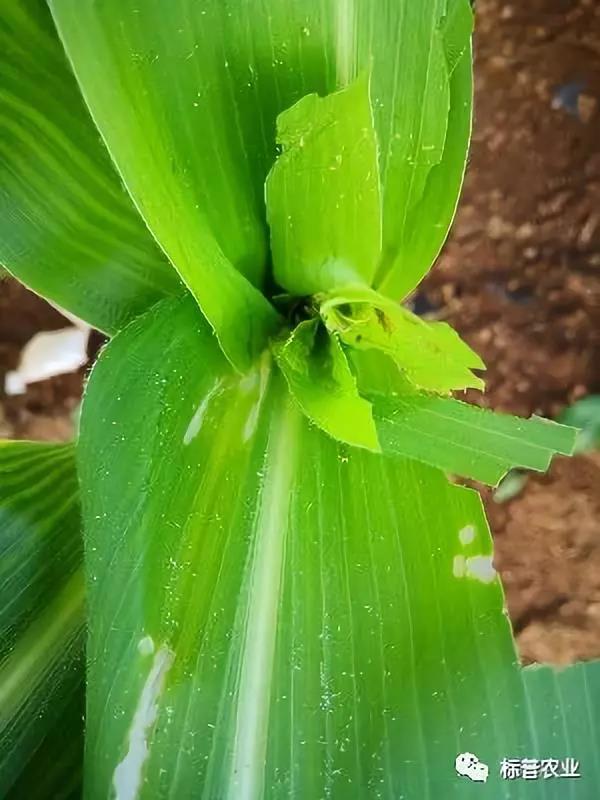 幼蟲期取食玉米心葉,1~3齡幼蟲危害玉米正面新嫩葉,取食后形成半透明薄膜“窗孔”;低齡幼蟲還會(huì)吐絲,借助風(fēng)擴(kuò)散轉(zhuǎn)移到周邊的植株上繼續(xù)為害;4~6齡幼蟲對玉米的為害更為嚴(yán)重,取食葉片后形成不規(guī)則的長形孔洞,可將整株玉米的葉片取食光,嚴(yán)重時(shí)可造成玉米生長點(diǎn)死亡,影響葉片和果穗的正常發(fā)育。