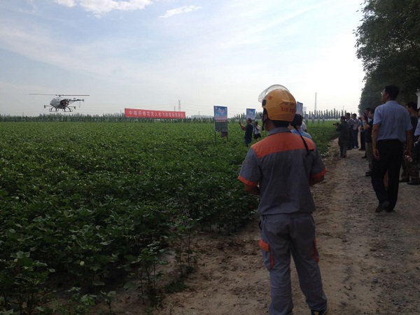 2015年7月2日,全豐航空植保應(yīng)中國(guó)農(nóng)業(yè)科學(xué)院棉花研究所(中棉所)邀請(qǐng),在新疆石河子市進(jìn)行棉花飛防演示。