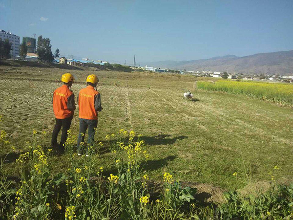 2015年1月24日,云南省農(nóng)科院陸琳、云南農(nóng)業(yè)大學(xué)傅楊教授、石林縣農(nóng)技推廣站王站長(zhǎng)以及安陽(yáng)全豐董事長(zhǎng)助理薛弘等一行來(lái)到云南省石林縣鹿阜街道辦事處北大村臺(tái)創(chuàng)園,在海拔1860米的地區(qū)做了油菜花的霧滴沉降實(shí)驗(yàn),農(nóng)用無(wú)人機(jī)一經(jīng)展示,就在當(dāng)?shù)厥艿搅撕艽蟮年P(guān)注。在無(wú)人機(jī)起飛做實(shí)驗(yàn)的過(guò)程中,時(shí)不時(shí)有當(dāng)?shù)氐霓r(nóng)民拿起手機(jī)拍照,做完實(shí)驗(yàn)后,當(dāng)場(chǎng)就有農(nóng)民表示希望安陽(yáng)全豐的無(wú)人機(jī)團(tuán)隊(duì)給他們打藥。