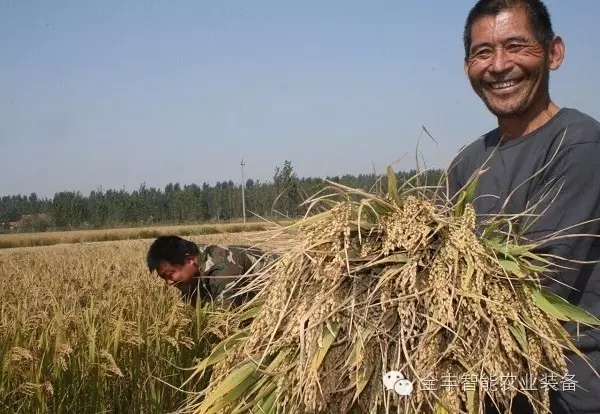 農民黝黑干枯的臉上浮現豐收的笑臉。