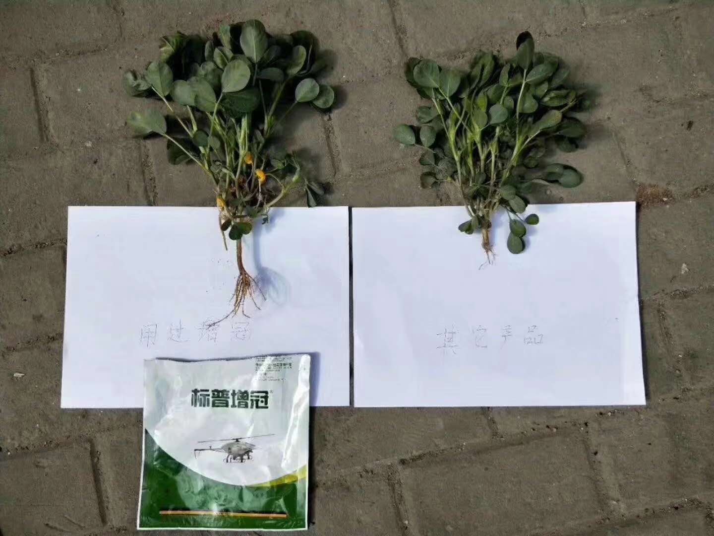打過增冠12天,同樣的地塊,同樣的旋耕,同樣的施肥,與其他30元/畝的同類產(chǎn)品比較,根系旺盛,葉片更加厚實(shí)。