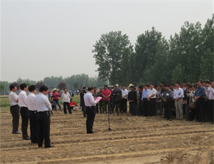 5月17日,我公司收山東省菏澤市政府邀請,參加“菏澤市大蒜收獲暨棉花移栽機械化現(xiàn)場會”,菏澤市政府副市長、菏澤市農(nóng)機局局長、巨野縣委副書記到場參加現(xiàn)場展示。菏澤市各區(qū)縣副縣長、農(nóng)機局長、鄉(xiāng)鎮(zhèn)長及農(nóng)機***合作社和種田大戶二百多人參加會議。山東省農(nóng)機局派員參加通訊采集,齊魯晚報、大眾日報及各級電視臺現(xiàn)場采訪。