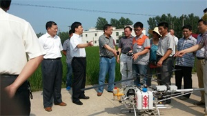 6月23日下午,信陽市光山縣植保站在羅陳鄉(xiāng)青龍河農(nóng)機(jī)***合作社舉辦水稻重大病蟲害暨稻瘟病防控飛防現(xiàn)場(chǎng)觀摩會(huì),安陽全豐航空植??萍加邢薰臼苎麉⒓?,三架3WQF80-10型農(nóng)用無人機(jī)亮相觀摩會(huì),引起現(xiàn)場(chǎng)趕來參加現(xiàn)場(chǎng)觀摩會(huì)的經(jīng)銷商、種糧大戶、群眾的嘖嘖稱贊?! ∮^摩會(huì)上,安陽全豐航空植保科技有限公司技術(shù)人員進(jìn)行現(xiàn)場(chǎng)飛防作業(yè)演示,并對(duì)青龍河農(nóng)機(jī)***合作社所種植水稻進(jìn)行了統(tǒng)防統(tǒng)治作業(yè),使當(dāng)?shù)刂脖U绢I(lǐng)導(dǎo)及經(jīng)銷商、農(nóng)戶和群眾很直觀地了解到農(nóng)用無人機(jī)飛防作業(yè)與傳統(tǒng)噴灑作業(yè)相比速度快、效率高等明顯優(yōu)勢(shì)。觀摩會(huì)結(jié)束后,公司技術(shù)人員對(duì)相關(guān)農(nóng)民***合作社人員進(jìn)行了農(nóng)用無人機(jī)的現(xiàn)場(chǎng)培訓(xùn)?! ≡摽h常務(wù)副縣長(zhǎng)劉敬洲帶領(lǐng)縣實(shí)驗(yàn)辦、農(nóng)業(yè)局、財(cái)政局、農(nóng)機(jī)局等相關(guān)單位主要領(lǐng)導(dǎo)參加了觀摩會(huì),并對(duì)全豐農(nóng)用無人機(jī)防治水稻重大病蟲害作出了高度肯定,要求農(nóng)業(yè)部門加大對(duì)飛防作業(yè)的推廣力度,破解豫南稻區(qū)施藥的難題,走出一條適合當(dāng)?shù)氐緟^(qū)施藥的新路子。(供稿人:張德虎)